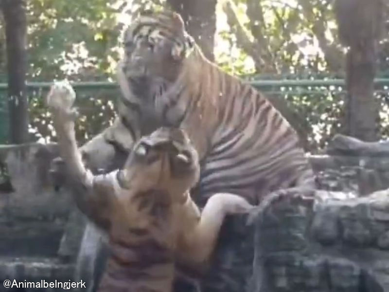 「大きくてもやっぱりネコ」2匹の虎が『トラパンチ』でじゃれ合う