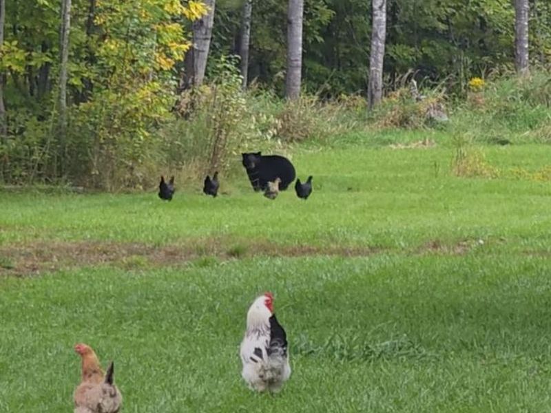 野生のクマがニワトリに追い立てられて逃げ去る(動画)