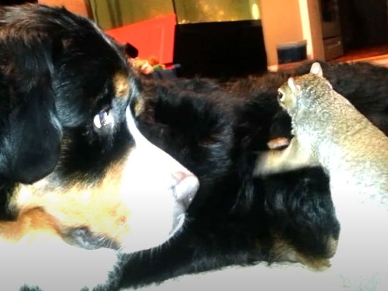 Squirrel hides nuts in a Bernese Mountain dog's fur - YouTube