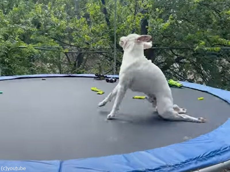 トランポリンに乗った犬が…見たことのない走り方をする(動画)