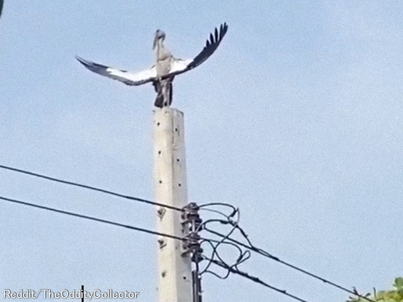 「なんだか神々しい鳥が電柱の上にいるんだけど…」羽を広げている理由