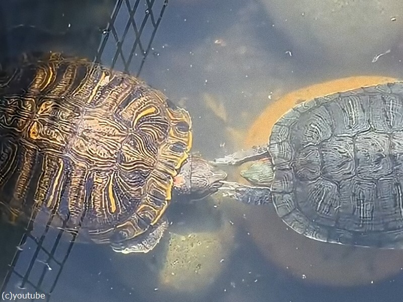 ●オスがメスとイチャイチャしている。これが彼らの求愛の仕方だ。亀はテキーラを飲まない。