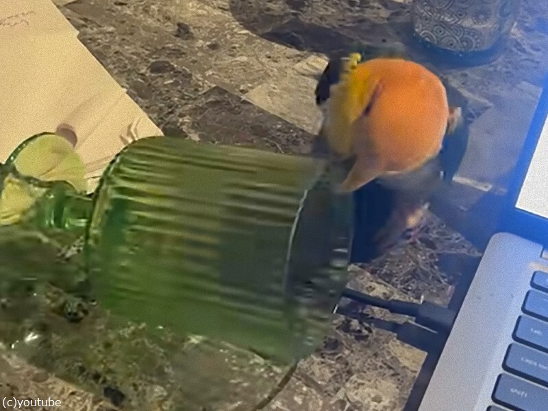 コップで遊びたいインコが…全身を使って要求する(動画)