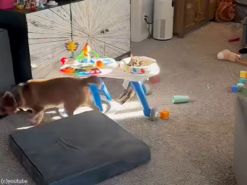 暖かい場所を見つけた猫…たとえ赤ちゃん用のイスでも熟睡する(動画)