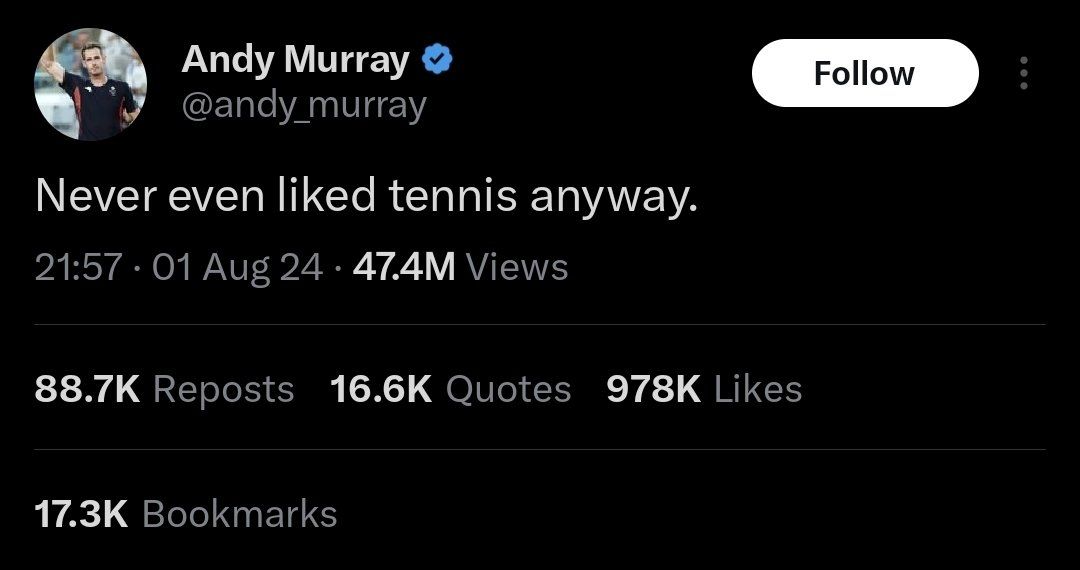テニス界の「ビッグ4」アンディ・マレー選手が引退したときの投稿が語り草に