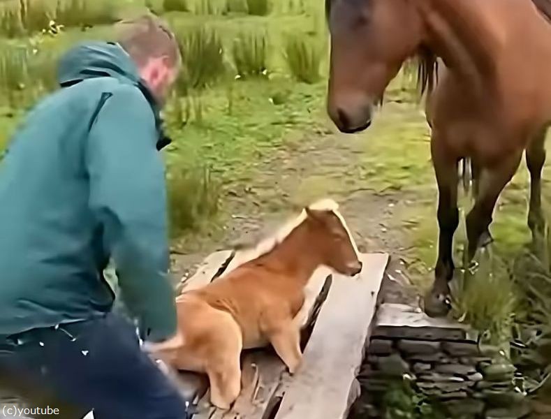 ママ馬「子馬を助けてくれてありがとう!」真っ先に男性に感謝する(動画)