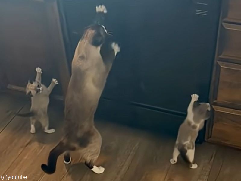 子猫たちが…ママ猫のおかしな動きをマネする(動画)