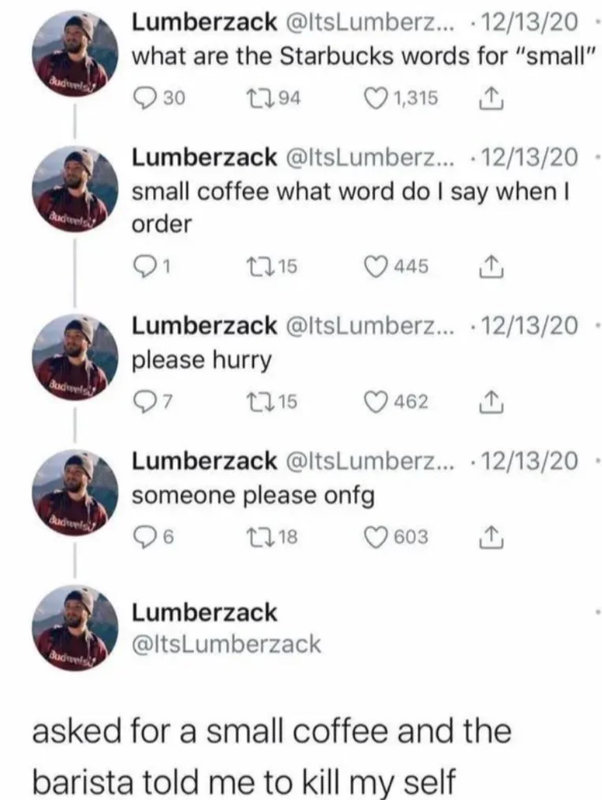スタバの列に並んだ海外男性「誰かスモールサイズを何て呼ぶか、今すぐ教えて!」SNSで聞くも間に合わず…