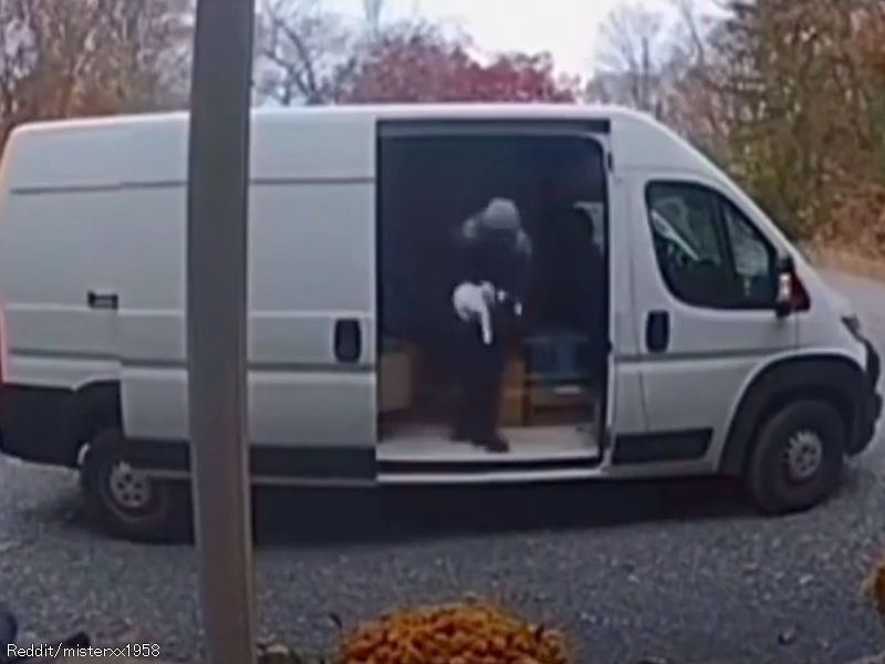 配達員も乱暴に扱うことなく、辛抱強く外へ戻している様子が印象的です。こんな光景なら、少しくらい配達が遅れても許したくなりますね。