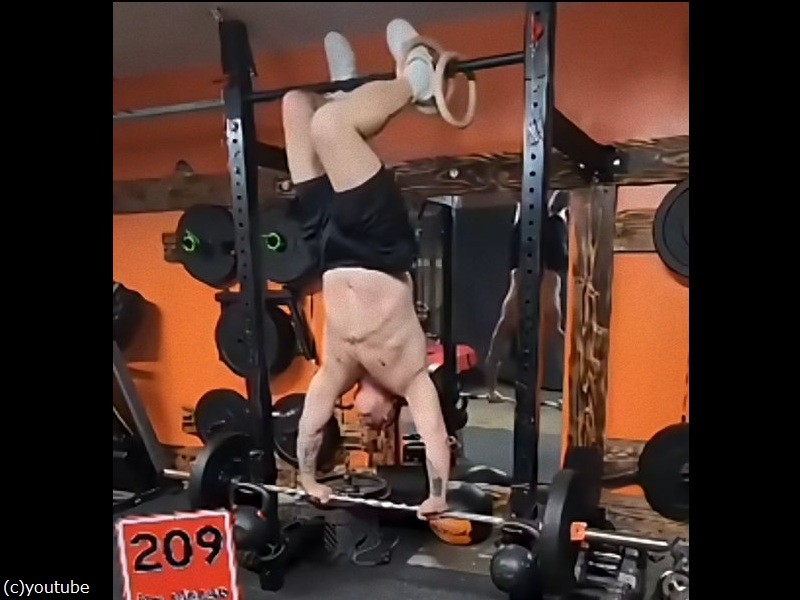 逆立ちトレーニング中の男性が…リングに足がハマって大ピンチ!(動画)