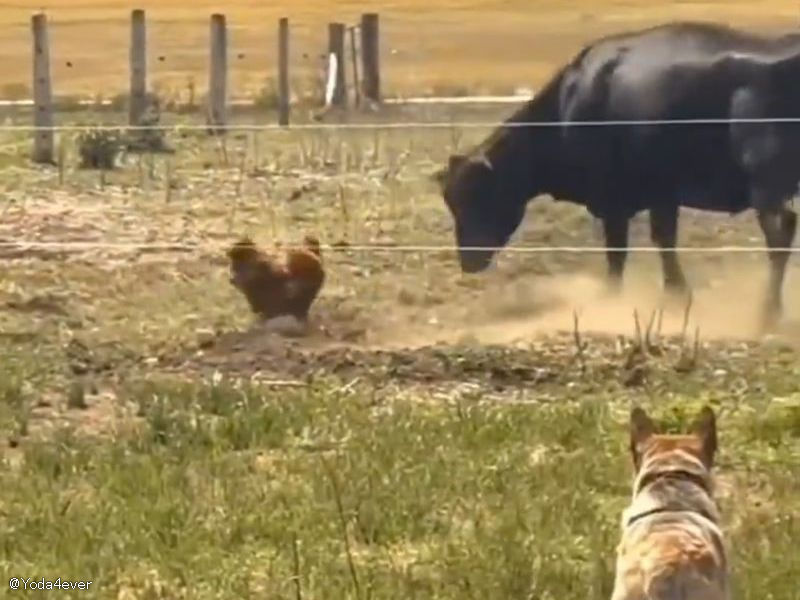 犬もビックリ…ニワトリと牛が対決したら勝者はニワトリだった